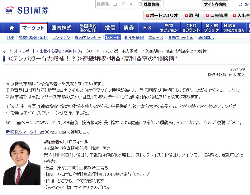 出世株を探せ!新興株ウィークリーどなたでもご覧いただけるレポート